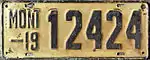 1919 | Embossed dark green serial on light green plate with border line; "MONT –19" at left | none | 12345 | 1 to approximately 58000 | |