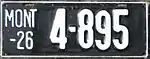1926 | Embossed white serial on black plate with border line; "MONT –26" at left | none | 12-345 | 1 to approximately 90-000 | |