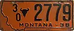 1936 | Embossed black serial on orange plate with state-shaped border; "36–MONTANA" below serial | none | 1-1234 10-1234 |