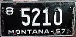1957–58 | Embossed white serial on black plate with border line; "MONTANA–57" centered at bottom | none | 1/ 12345 1/0 1234 |