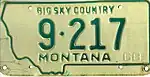 1968–69 | Embossed green serial on reflective white plate with state-shaped border; "MONTANA" and debossed "68" below serial | "BIG SKY COUNTRY" centered at top | 1·12345 10·1234 |