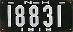 1918 | White serial on green porcelain plate; "N H" and "1918" centered at top and bottom respectively | none | 12345 | 100 to approximately 24700 | Some later plates manufactured on fiberboard.[2] |