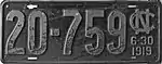 1918–19 | Embossed white serial on black plate; "NC" monogram and "6-30 1919" at right | none | 12-345 | 1 to approximately 80-000 | |