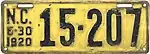 1919–20 | Embossed black serial on yellow plate with border line; "N.C. 6-30 1920" at left | none | 12-345 123456 |