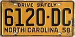 1958 | As 1956 base, but with "NORTH CAROLINA 58" at bottom | "DRIVE SAFELY" as on 1956 base | A-1234 AB-1234 |