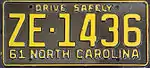 1961 | As 1957 base, but with "61 NORTH CAROLINA" at bottom | "DRIVE SAFELY" as on 1957 base | A-1234 AB-1234 |