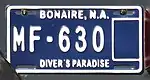 2005 Embossed white serial on dark blue background with sticker box at right all in the center; "BONAIRE, N.A." centered at top; slogan centered at bottom Diver's Paradise MF-123