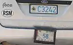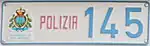Sammarinese authorities license private vehicles with distinctive licence plates which are white with blue figures, usually a letter followed by up to four numbers. To the left of these figures is displayed the national coat of arms of San Marino. Many vehicles also carry the international vehicle identification code "RSM" in black on a white oval sticker. Since 2004 custom licence plates have also become available.