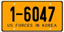 Private vehicles used by the US military in South Korea had no Korean character but instead had a single half-size digit followed by a dash and the four digit number. The digit identified the city where the car was registered. A license plate that read 5-4187, for example, was a US Army car registered in Taegu. Vehicles to be used on a US military base had a white license plate with "US Army" written in English on the top with a six-digit number below.