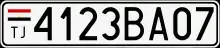 Vehicle registration plate of Tajikistan (previous format from 1996)