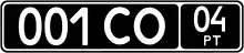 The plate design is black characters on a white background. The number of individuals differs from the format by the presence of only three digits at the beginning of the number. Since 2014, the size of letters and numbers is the same.