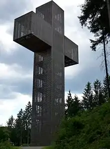 Veitsch Mount of Olives Pilgrims Cross, (German: Pilgerkreuz am Veitscher Ölberg) is the world's largest pilgrims cross. It is situated near Veitsch in Austria. The cross was built in 2004; it is made of wood and is 40.6 m (133 ft) tall, with crossarms spanning 32.20 m (105.6 ft).
