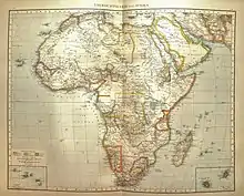 When World War I caused a redrawing of national boundaries, some publishers, such as Columbus Verlag of Berlin, began developing geographical maps which ignored territorial boundaries. Velhagen & Klasing rejected this shift and focused on territorial boundaries.[15] Velhagen & Klasing published the second most popular school atlas in Germany in the 1920s, after the one made by Carl Diercke.[16] Their atlases in this era were examples of cartographic propaganda intentionally designed to promote German nationalism,[17] as had their other textbooks since the nineteenth century.[18] The trend to expand the borders of Germany and German cultural influence in Velhagen & Klasing's maps began in the late 1920s, and by 1933 their maps contained large-scale falsifications.[19]