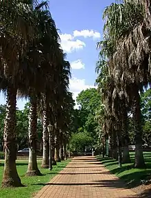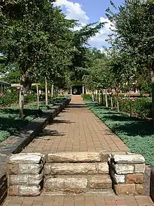 Venning Park is a park in Arcadia, Pretoria, South Africa. The three-hectare park is formally laid out with a sunken garden on the western side of the park and a tea garden, the Heavenly Rose Café, in the middle. The park also features a date palm-lined path and rose gardens on the eastern side near the American Embassy and the Indian High Commission. Annuals are regularly planted on a site between the busy arteries of Pretorius and Schoeman Streets and quieter Eastwood and Farenden Streets.[1]