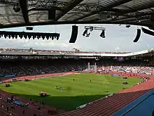 Ibrox Stadium, in the South Side, was the venue for the Rugby Sevens tournament.[7] Mountain biking was held on the Cathkin Braes in Rutherglen, the Royal Burgh neighbouring the City.[8] The Hampden Park hosted all the track and field events as well as the closing ceremony.[9]