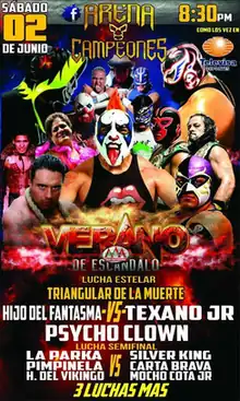 In September 1997 Mexican professional wrestling, company Asistencia Asesoría y Administración, later known as "AAA", or Triple A and then Lucha Libre AAA Worldwide added a new major event to their schedule as they held the first ever Verano de Escándalo ("Summer of Scandal") show on September 14, 1997.[1] The Verano de Escándalo show became an annual event from 1997 until 2011, usually held in September, with few exceptions. In 2012 AAA changed their major event schedule as they pushed Triplemanía XX to August instead of holding the show in June or July as had been the case up until 2012.[2] With the change to the schedule AAA did not hold a Verano de Escándalo show in 2012 and 2013. In 2014 the show was put back on the schedule, but held in June instead, filling the void left when Triplemanía was moved.[3] AAA did not hold a Verano de Escándalo in 2016, instead holding the Lucha Libre World Cup in June.[4] The 2018 Verano de Escándalo show will be the 19th show in the series.