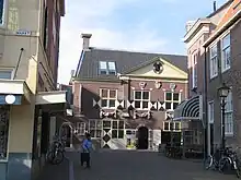 1730s engraving of the original Delft Guild house, by Abraham Rademaker