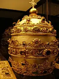 It is worth noting however that the equivalent title "Vicarius Christi" is indeed known to be inscribed upon the Belgium Tiara given to Pope Pius IX on 18 June 1871 by the Ladies of the Royal Court of the King of the Belgians and designed by Jean Baptist Bethune of Ghent.[20][21] Adventists have proposed that the alternate "Vicarius Christi" is no better than Vicarius Filii Dei, because of the correlation in Leviticus 24:18 between the substitute Vicarium in the Vulgate[22] and the substitute ἀντί "life for life" in the greek text.[23] They have proposed Vicarius Christi therefore means "Antichrist".[24]