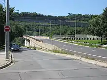 Victoria Avenue is a Lower City arterial road in Hamilton, Ontario, Canada. It starts off as a ramp and part of a Mountain-access road, the Claremont Access, on Hunter Street East in the Stinson neighbourhood. It's also a one-way thoroughfare that flows north through the Landsdale and the city's North End industrial neighbourhood past Burlington Street East where it ends at Pier 11.