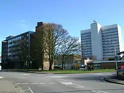 A major new wing to the south of the current tower block was procured under a Private Finance Initiative contract in 2009. The new wing included 500 beds together with eleven operating theatres and a new accident and emergency department. The area surrounding the hospital was altered to include signal controlled junctions, a new mini-roundabout and new car parking spaces at both the north and south ends of the hospital.[7][8] The works, which were designed by the Building Design Partnership and undertaken by Balfour Beatty at a cost of £170 million, were completed in summer 2012.[9]