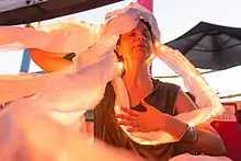 Victoria Vesna performing Octupus Mandala at Santa Monica Glow. Photo: Brandon Choe.
