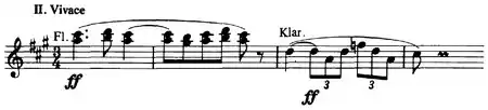 Der geigende Eremit (The Hermit Fiddler,[5] literally: The hermit playing violin) is based on a painting Der Einsiedler (The Hermit) that Böcklin made in Florence in 1884.[6] A solo violin is contrasted by a group of strings playing con sordino and another group playing not muted.[1] The "ethereal violin"[5] has been compared to Ralph Vaughan Williams' The Lark Ascending, composed in 1914.[5]