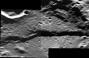 Grifo Rupes cutting across Villa-Lobos crater