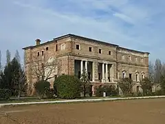 Villa La Favorita was constructed between 1615 (or 1613) and 1624 by Duke Ferdinand Gonzaga, who intended to move his court from the ducal palace to here.[1][2] It was built on the outskirts of Mantua, but not too far, just on the other side of the lakes that surround the city. The ducal architect, Nicolò Sebregondi, provided the design and was responsible for the overseeing the building.[1][2] The palace was the last great Gonzaga residence, and was a grand baroque structure.[1]