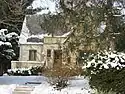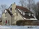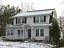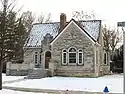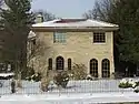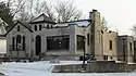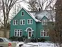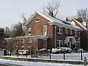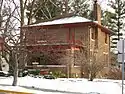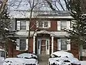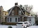 As limestone workers and owners, the residents of Vinegar Hill naturally looked to limestone as the material for their own houses.[2]: 89 They used these materials to construct residences in a wide range of architectural styles, including American Craftsman, Neoclassical, and Art Deco. Inside, the houses were also ornate: many feature mantels and balusters of carven stone,[3] and the four houses built by Christopher Donato also include elaborate transoms and lintels. The most prominent houses in the neighborhood are the hilltop homes of the wealthy near the eastern end of the district; here may be found styles such as Tudor Revival and Georgian-influenced Colonial Revival.[2]: 90 Throughout the district, many houses are found in various forms of Colonial and English Revivals,[4] and multiple Spanish Colonial Revivals are among the most significant residences of the lower part of the hill. Among the books that have concentrated on the architecture of Vinegar Hill is Carol Shields' novel The Stone Diaries, in which the neighborhood is part of the setting for much of the novel.[2]: 91