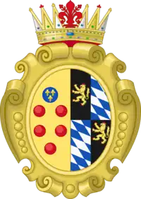 Violante Beatrice of Bavaria (Violante Beatrix; 23 January 1673  30 May 1731) was Grand Princess of Tuscany as the wife of Ferdinando de' Medici, Grand Prince of Tuscany and Governor of Siena from 1717 until her death. Born a Duchess of Bavaria, the youngest child of Elector Ferdinand Maria, she married the heir to the Tuscan throne, Ferdinando de' Medici, in 1689.[1] Violante Beatrice loved him but Ferdinando did not return her affection, declaring her too ugly and too dull.[2][3] Her brother-in-law, Prince Gian Gastone, befriended her out of sympathy, a friendship that lasted until Violante Beatrice's demise.[4]