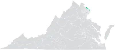 The district overlaps with Virginia's 8th and 10th congressional districts, and with the 34th, 47th, 48th, 49th, and 86th districts of the Virginia House of Delegates.[4] It lies directly across the river from Maryland and the District of Columbia.[1]