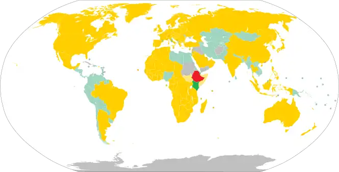 Tourist visa (valid for up to 3 months) can be issued on arrival at Addis Ababa Bole International Airport to nationals of the following countries and territories, or persons holding residence permits issued by these countries or territories.[6]