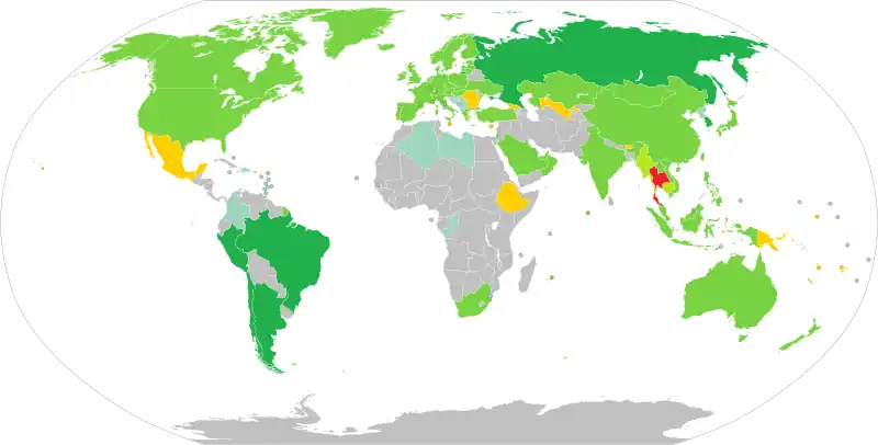 Under the Tourist Visa Exemption Scheme, citizens of countries and territories around the world may enter Thailand without a visa for a stay of up to 30 days, provided the purpose of entering Thailand is for tourism only.[1][5][8] They may apply to extend their stay for another 30 days since 29 August 2014.[9]