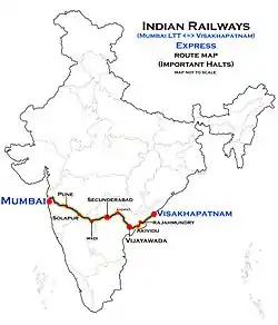 The Visakhapatnam – Lokmanya Tilak Terminus Express is a daily Express train service of the Indian Railways. It was launched on 24 March 2010.