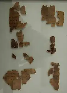 Visions of Amram, also referred to as 4Q543-549, is a collection of five extremely fragmented copies found in Qumran cave 4. In 1972, Jozef T. Milik published a significant fragment of the Visions of Amram.[1] Since then, controversy has surrounded this document at every turn. In this testament, Amram gathers his sons, Moses and Aaron, to his deathbed and relates stories of his life, providing wisdom and commanding understanding.[2] This document is named for a vision shared during this time.