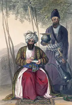 The vizier stood between sovereign and subjects, representing the former in all matters touching the latter.[10] The 11th-century legal theorist al-Mawardi defined two types of viziers: wazīr al-tanfīdh ("vizier of execution"), who had limited powers and served to implement the caliph's policies, and the far more powerful wazīr al-tafwīd ("vizier with delegated powers"), with authority over civil and military affairs, and enjoyed the same powers as the caliph, except in the matter of the succession or the appointment of officials.[11] Al-Mawardi stressed that the latter, as an effective viceroy, had to be a Muslim well versed in the Shari'a, whereas the former could also be a non-Muslim or even a slave, although women continued to be expressly barred from the office.[12]