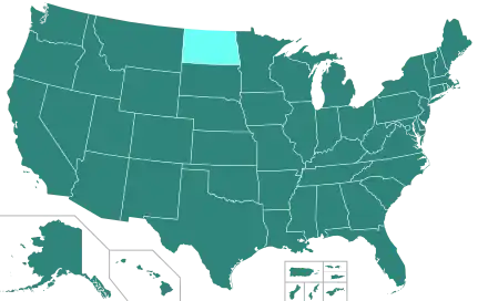 Voter registration in the United States is required for voting in federal, state and local elections. The only exception is North Dakota, although cities in North Dakota may register voters for city elections.[1] Voter registration takes place at the county level in many states and at the municipal level in several states. Most states set cutoff dates for voter registration and to update details, ranging from 2 to 4 weeks before an election; while a third of states have Election Day or "same-day" voter registration which enables eligible citizens to register or update their registration when they vote before or on election day.