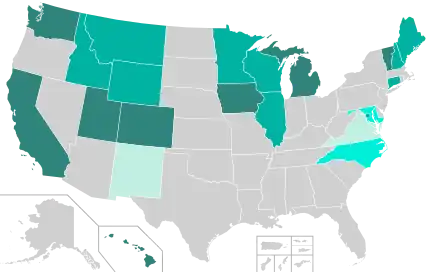 On January 1, 2016, the Oregon Motor Voter Act implemented automatic voter registration of eligible citizens tied to the process of issuing driver licenses and ID cards, with the person having the right to opt out.[60] By April 2016 three more states – California, West Virginia, and Vermont – adopted the system, and in May 2016 Connecticut announced plans to implement it administratively rather than by legislation.[61][62] Alaskan voters approved Measure 1 on November 8, 2016, to allow residents to register to vote when applying annually for the state's Permanent Dividend Fund.[63][64] Voter approval of Measure 1 made Alaska the first state to implement automatic (opt-in) voter registration via ballot initiative. New York passed automatic voter registration on December 22, 2020, with implementation to commence in 2023.[65] Several more states have considered legislation for automatic registration.[66] On August 28, 2017, Illinois set July 1, 2018, for implementation of automatic voter registration at motor vehicle agencies, and a year later at other state agencies.[67]