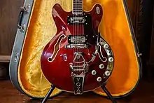 The Vox Ultrasonic or V268 was a mid- to late-1960s hollow body thinline electric guitar. The guitar's body resembled Gibson thinline models such as the ES-335, but otherwise was quite different. The Ultrasonic had no central maple block or set neck, making it more similar in construction to Fender's thinline guitar, the Coronado.