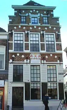 In 1742 Greve died childless, and her old age home for women was created; this is commemorated on the gable stone in the front of the house.[9] The stone was commissioned by Gerrijt Willem Golts, the first regent, who also oversaw the conversion of the complex to homes for 17 (later 12, today 5) single women with a common kitchen.[9] Aleida's sitting room became the regent's room. The house functioned as a retirement home for women from 1742 when the first inhabitant was Aleida Greve's elderly servant. The director G.W. Golts was a cousin by marriage to Greve, and descendants of their family were regents until 1916, when a new set of regents were appointed.[9] With the increase in public services in the 20th century, the need for private initiatives to help the poor decreased, and the Vrouwenhuis closed as a charitable institution for elderly ladies in 1984.[10] Since 1987, the ground floor and the majority of the oldest part of the house function as a museum, while a few former ladies' rooms are let to young women.[3][9]