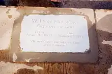 McClure was killed by guerillas on March 27, 1977, in Gode, Ethiopia. With his son, Don Jr., he had flown to the Gode station five days earlier to make final arrangements to turn the station over to World Vision.[13] Lyda McClure was also scheduled to go with them, but was pulled from the flight because of a high priority passenger. The SIM missionaries in K'elafo had been held hostage and then evacuated, landing in Gode long enough to recount their harrowing experiences. Don requested that Lyda charter a plane to fly them out, although that flight would not occur until the weekend.[14] About 1:30 Sunday morning, Don Jr. heard noises from his father's bedroom. When he investigated, he found the house surrounded by armed men. Graeme Smith (World Vision) heard the noises from a nearby house and came over to investigate. Smith and the two McClures were taken out into the yard. After the houses were looted, the command was given to shoot. A blast of gunfire killed Don Sr., but Smith and Don Jr. were spared. The guerillas who had rounded up the rest of the Smith family, two World Vision nurses and two German technicians were confused by the gunfire and ran away.[15] Don Sr. was buried in Gode, Ethiopia at 10 a.m. March 28, 1977. In the summer of 2000, Don McClure's grandson, Jonathan Partee (son of Margaret Jean), returned to Gode to find the simple metal cross bearing McClure's name had been removed. In 2001, a new marker was placed on the gravesite which reads: