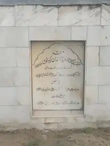 Inscription on Wahiduzzaman Kairanawi's grave in the Qasmi Cemetery in Deoband