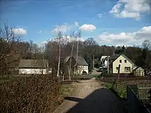 The line to Rochlitz left Waldheim in a long curve in a north-western direction. After crossing under the Waldheim bypass road it passed Richzenhain and crossed the road between Waldheim and Hartha on a level crossing that was equipped with halfway gates in the last years of the operation.[18] It continued to Hartha at a distance of about 50 m from State road S 36 and crossed another road (now K 7533) at the station entrance on a level crossing with full barriers.[19]