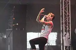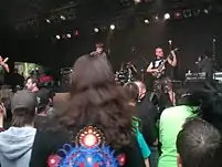 War from a Harlots Mouth recorded and produced their first EP titled Falling Upstairs in cassette format during June 2006 with only 50 physical copies of it released through the independent Berlin-based cassette tape label Yehonala Tapes.[2] The lineup of the EP consisted of Simon Hawemann on guitar and bass, Paule Seidel on drums and Steffen Winopal on vocals.[3] Later on that same year, they released a CD/10" Split with deathcore act Molotov Solution on Twelve Gauge Records.[4] After finding a second guitarist and a bassist in the end of 2006, WFAHM joined the War of Attrition Tour in 2007, promoting the album of the same name by Dying Fetus, accompanying bands Skinless and Cattle Decapitation, also joining the stage for Never Say Die! Fest with bands Ion Dissonance, Dead to Fall, and Through the Eyes of the Dead. Also in 2007, the band joined Lifeforce Records and released their album Transmetropolitan in September.[5] The band during these times gained a lot of notoriety in their home city due to their lead vocalist, Steffan Winopal's extremely screechy and "dying" sound he gave off in his screamed vocals, distinguishing the band from many others that played in a similar style. They were also one of the first groups to incorporate jazz influence into their heavy sound around their area.