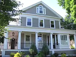 The Washington Damon House is a historic house in Reading, Massachusetts, exhibiting the adaptation of existing housing stock to new architectural style. The 2+1⁄2-story wood-frame house was built in 1839, and was at the time a fairly conventional side hall Greek Revival house, although it has small wings on either side that also appear date to that period. It was significantly renovated in 1906, when the wraparound porch was added, as was the Palladian window in the front gable end. When made, these additions included Greek Revival elements that were sensitive to those already present on the structure.[2]