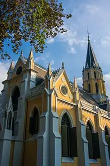 Wat Niwet Thammaprawat Ratchaworawihan (Thai: วัดนิเวศธรรมประวัติราชวรวิหาร) is a Buddhist temple (wat) of the Dhammayut Order, located within the grounds of the Bang Pa-In Royal Palace in Thailand's Phra Nakhon Si Ayutthaya Province. Founded in 1878, it is remarkable among Thai Buddhist temples in that its architecture mimics that of a European church, being built in the Gothic Revival style.