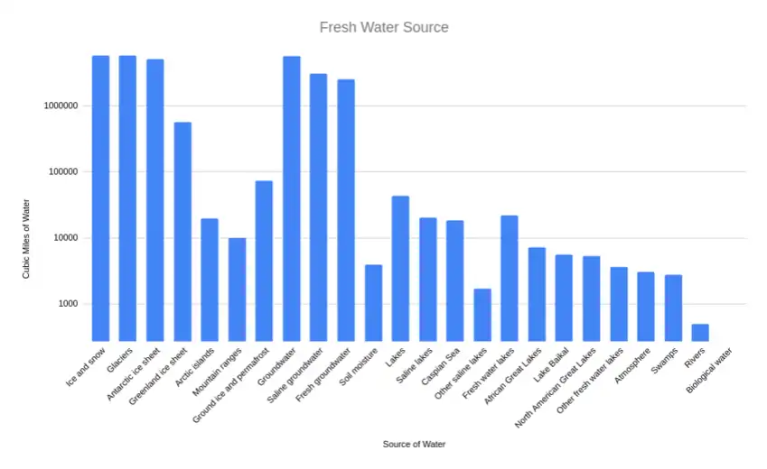 Logarithm graph of fresh water's source (including saline lakes and saline groundwater)