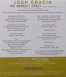 - ↑ Malec, Jim (October 9, 2007). "Josh Gracin - "We Weren't Crazy"". The 9513. Archived from the original on October 28, 2007. Retrieved July 30, 2008.