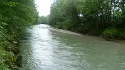 The Weiße Traun is a river of Bavaria, Germany. Th nearly 14 kilometer long river is formed at the confluence of the Fischbach and the Seetraun south of Ruhpolding. At its confluence with the Rote Traun near Siegsdorf, the Traun is formed.