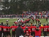 The rivalry between the Wellesley Raiders and the Needham High School Rockets is considered the oldest public high school football rivalry in the country, with 135 matchups since 1882. The game usually takes place on Thanksgiving Day, with Wellesley beating Needham 24–17 in the last iteration to improve their all-time record to 66-60-9.[10][11][12]